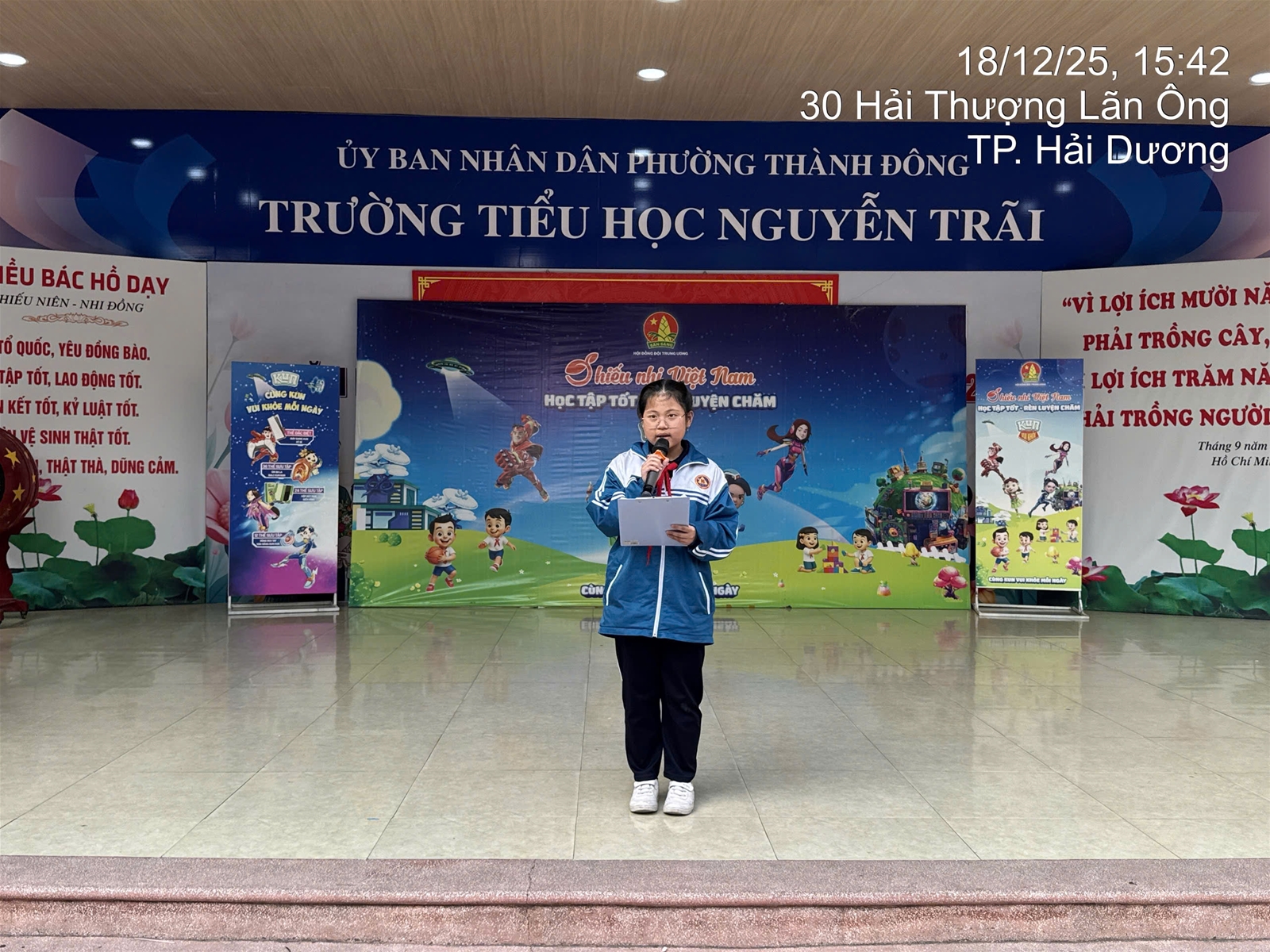 Chiều ngày 18/12/2025, tại Trường Tiểu học Nguyễn Trãi, chương trình “Thiếu nhi Việt Nam học tập tốt - rèn luyện chăm” với chủ đề “Cùng Kun vui khỏe mỗi ngày” do Hội đồng Đội Trung ương tổ chức đã diễn ra sôi nổi, vui tươi và đầy ý nghĩa.